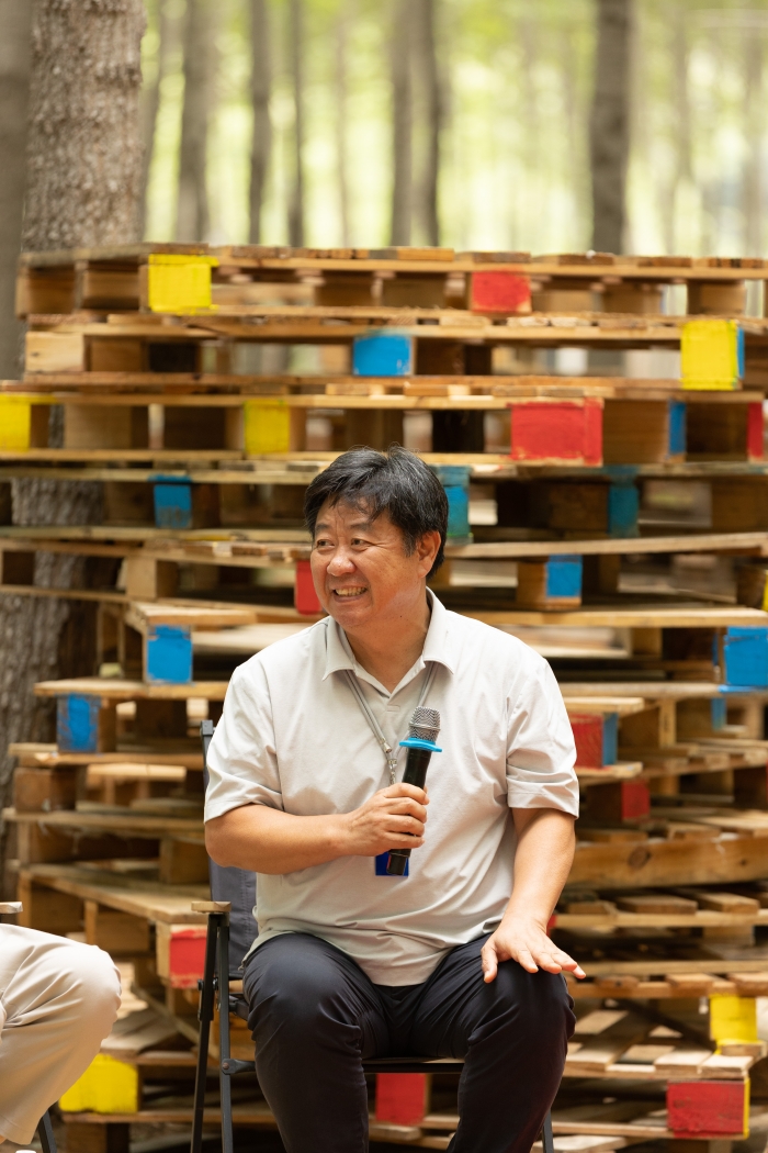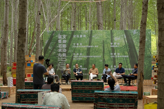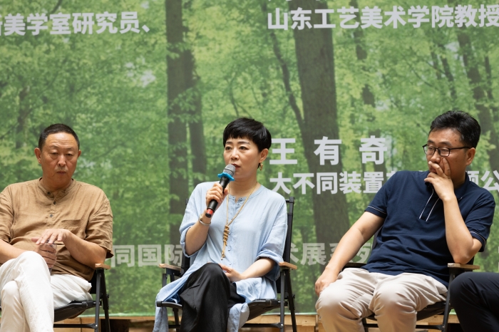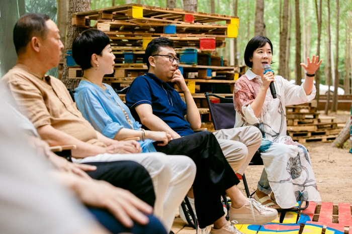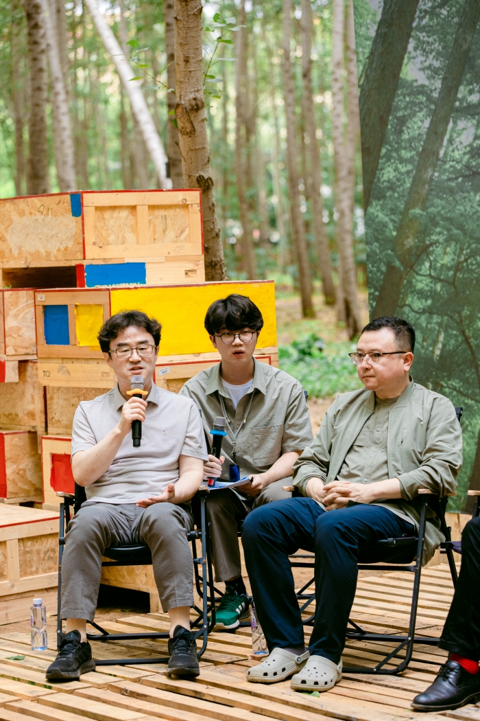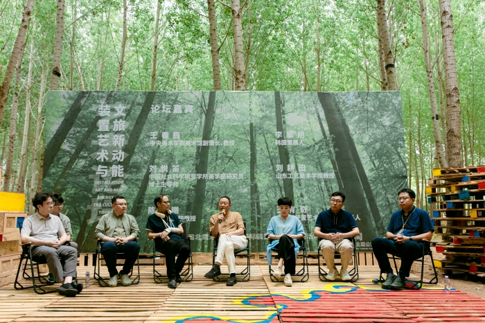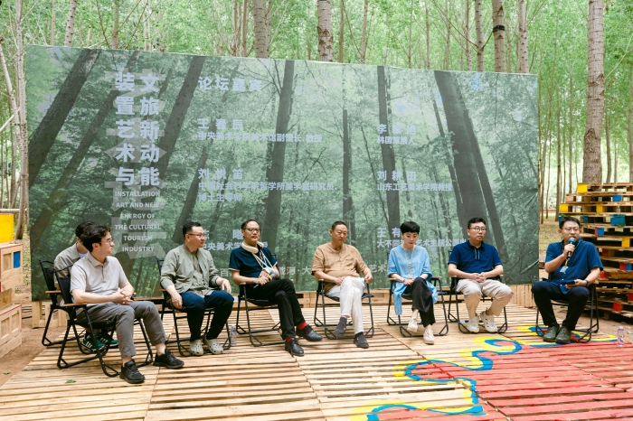 開幕當天下午,在大不同裝置藝術主題公園現場以“林中對話”的形式舉行了學術論壇。論壇以“裝置藝術與文旅新動能”為主題,大展策展人、中央美術學院美術館副館長王春辰,中國社會科學院哲學研究所研究員劉悅笛,韓國策展人李章旭,中央美術學院教授陳曦,山東工藝美術學院教授劉耕田,北戴河大不同裝置藝術主題公園出品人王有奇參加論壇,論壇由藝術中國主編許柏成主持。韓國藝術家金亨基、韓廷和也登臺進行了發言。