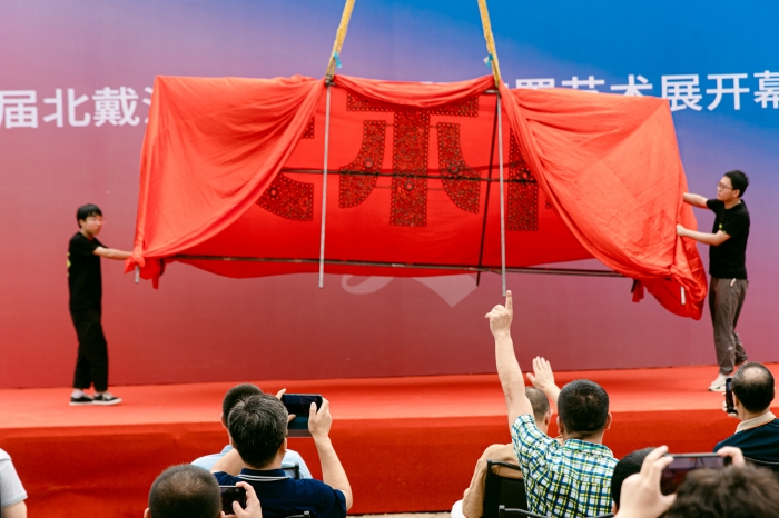 隨后,秦皇島市旅游和文化廣電局副局長陳友志,北戴河區政府副區長李增光、付娜,中央美術學院美術館副館長王春辰,中央美術學院教授陳曦,秦皇島不同文旅董事長王有奇將6顆金色螺絲放置于用螺母焊接而成的“大不同”招牌之中,為北戴河大不同裝置藝術主題公園開園試營業剪彩。開幕式由藝術中國主編許柏成主持。