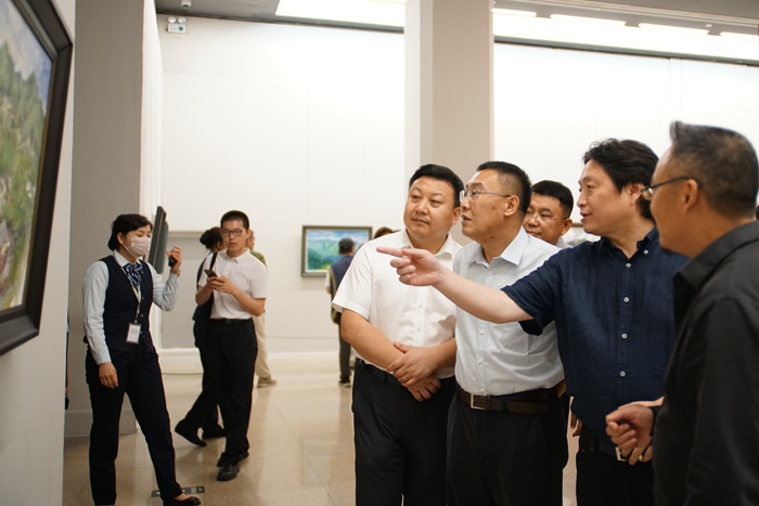 開幕式上,來自全國各地的嘉賓和油畫藝術家們齊聚一堂,共同見證了這一藝術盛事的開啟。文化和旅游部黨組成員、副部長盧映川出席開幕式并發表講話,著名油畫家靳尚誼先生、中國美術館館長吳為山、中國美術家協會主席范迪安、中央美術學院黨委書記高洪、文化和旅游部藝術發展中心主任姚友超、中國美術家協會副主席龐茂琨、江西省文聯副主席李小軍、國城控股集團有限公司副總裁張尼奇分別致辭。他們表示,此次展覽是藝術家們對井岡山這片神圣土地的一次深情回望,也是對中國油畫藝術創新發展的一次有力推動。開幕式由此系列活動的總策劃、中央美術學院院長林茂主持,原文化部副部長王文章出席活動并宣布開幕。