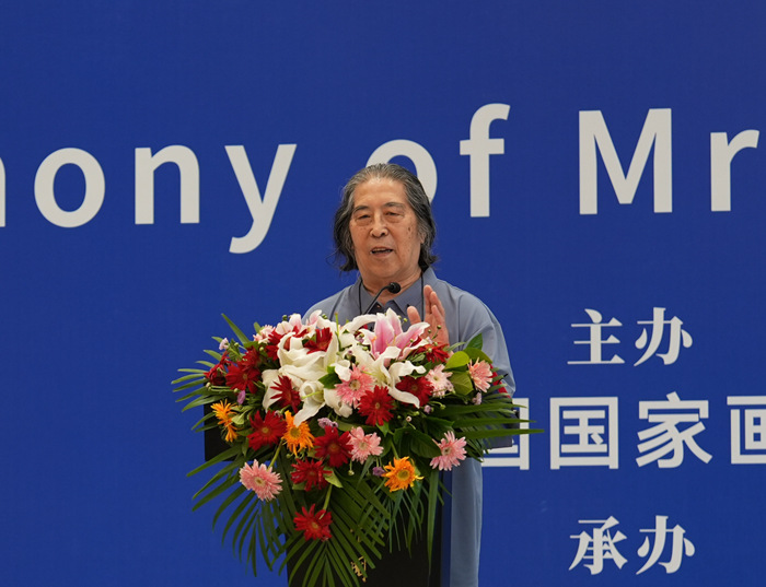 中國國家畫院黨委書記燕東升在感言中分享了三點感受,第一,致敬蔣兆和先生創造的彪炳史冊的經典美術作品。第二,感謝家屬慷慨無私的捐贈,與人民群眾共享公共藝術資源,時間證明了蔣兆和先生在美術史上的重要地位,同時也見證了蔣兆和先生家屬的大公無私。第三,中國國家畫院對這些藏品將認真做好保管收藏,特別是學術研究和典藏活化的工作,發揮藏品的最大效益。