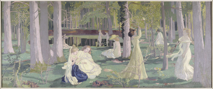 三名女網球運動員在球場上,一名裁判坐在網邊(Paul SérusierLa Lutte bretonne, entre1890 et 1891),1981年
