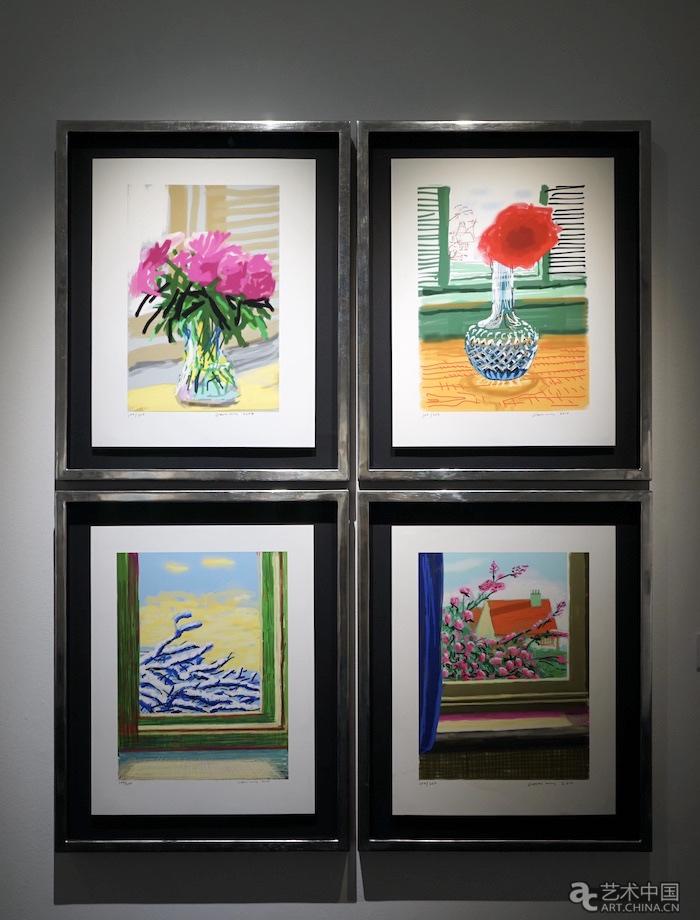 2020年新冠疫情期間,霍克尼在諾曼底家中開始使用iPad繪制風景畫并發送給朋友們。他對風景的描摹傳遞出的不僅是繪畫本身,而是充斥著對生活的熱愛,如《我的窗戶》四幅作品,花瓶和盆栽主題的作品,三四張并置陳列,傳遞出的不只是對色彩的嫻熟運用、對光的靈動描繪,而是如畫中盛開花卉般的濃濃生活熱情。同時,一系列繪畫構建其自身的敘事方式,自發地講述故事。