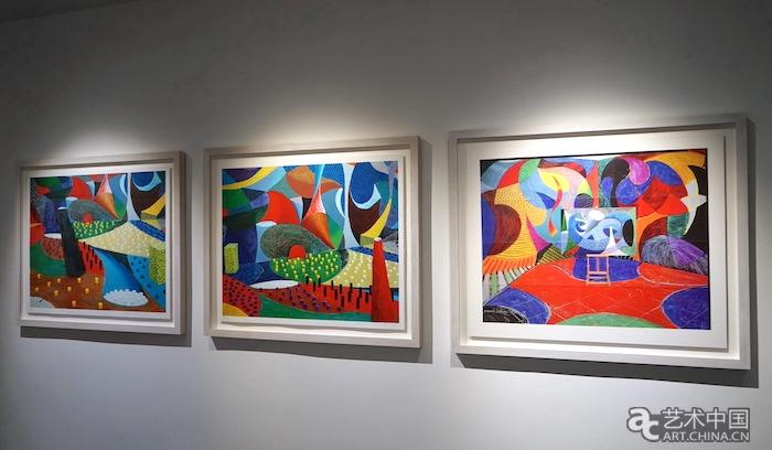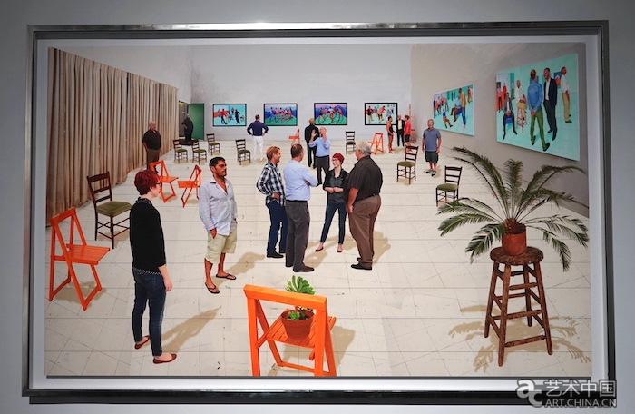 不同于抽象表現主義,霍克尼訴諸于具象,通過具體的人或物傳遞個人情感?;艨四嵊^察的和描繪的都是現實的世界,他不抽象地討論顏色,對他而言,色彩是現實世界的一個方面,而不是觀看事物的一種感覺。在展覽中,我們可以在畫中看到他的朋友、家人和愛人,他的家鄉約克郡,他游歷的地方,他的生活和情感。他的作品注入了個體共通的情感和情緒表達,營造或光線柔和的寧靜場景,或充滿生活熱情的溫暖氛圍,偶爾也有安靜內省的淡淡憂郁。