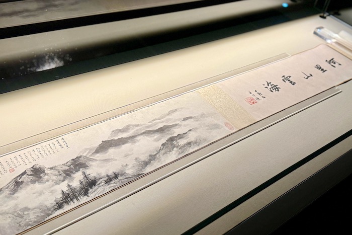 展覽呈現吳湖帆各時期的繪畫作品,從清“四王”入手臨仿的作品,到以《云表奇峰》為轉折點,融匯南北宗的畫作,體現其在繪畫方面的個性、思想與技法,全面展示了他的繪畫發展歷程。其中,《阿里山云?!啡珗D氣勢雄渾、景色奇特,將光影轉換為筆墨,是將阿里山云海進行藝術再現的杰作?!斗率瘽噙嗜攵▓D》《鳳池精舍圖》等極少展出,這次一同呈現給觀眾?!稇c祝我國原子彈爆炸成功》題材特殊,巧妙地把中國傳統山水畫筆法融合進來。吳湖帆的繪畫,是傳統藝術與現代都市文明融合的結果,特別是色墨相融的用色方式極具特色。