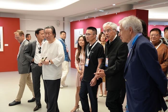 國際奧委會副主席胡安·安東尼奧·薩馬蘭奇,國際奧委會委員、中國奧委會副主席于再清,中國駐法國大使館臨時代辦陳棟公使、王健公參、王茵參贊,中國文促會主席楊曉陽,亞奧理事會副主席、體育委員會主席宋魯增,法國奧委會首席文化官斯蒂凡·哈多、辦公室主任弗朗索瓦·普利扎克,巴黎副省長艾蒂安·卡拉洛,法國歐拜赫維利埃市副市長田玲,法國特朗布萊昂法蘭?市副市?瑪麗·安吉·多蘇,文化和旅游部巴黎中國文化中心主任劉紅革,中國文促會書記、副主席曾來德,法國造型藝術家協會主席雷米·艾融,法國泰勒基金會主席讓·弗朗索瓦·拉赫優,剛果(金)駐巴黎全權大使埃米爾·恩戈伊·卡松戈,國際新聞記者協會主席喬瓦尼·美爾洛,中國書法家協會原副主席包俊宜,中國文促會副主席王平、夏斯均,中國文促會國畫院副院長張江舟,中國文促會創研部主任、國畫院副院長兼秘書長紀連彬,中國文促會書法篆刻院秘書長洪厚甜,法蘭西美術院通訊院士高立昂,法國藝術家沙龍主席布魯諾·瑪德萊納,著名電影導演雅克·馬拉泰爾、攝影師格瓦·戴高樂,中國體育新聞工作者協會副主席曹康等領導與國際文化藝術學術界、體育界和僑界名流300余人共同出席了開幕式。中央廣播電視總臺、人民日報、新華社、鳳凰新聞與歐洲時報等數十家國際新聞媒體共同見證了盛會啟幕。