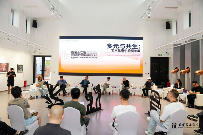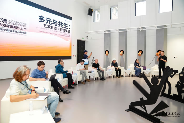 第一場論壇以“回歸與再造:我們為什么需要雙年展?”為主題,由策展人、撰稿人段少鋒主持,中國西部國際雙年展學術主持、四川美術學院教授張奇開,中國文物交流中心總策展師、中國西部國際雙年展總策展人田野,天津博物館副館長、天津美術館館長馬馳,藝術批評家劉淳,天津美術學院造型藝術學院副院長、教授譚勛,天津畫廊協會秘書長、帕斯卡畫廊主理人徐書瑞作為研討嘉賓展開討論。