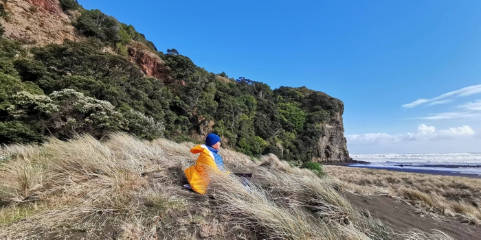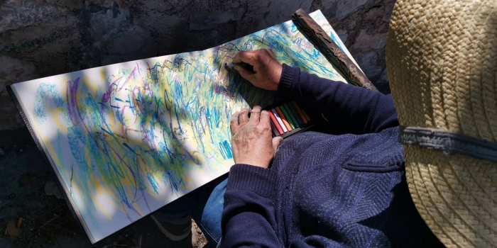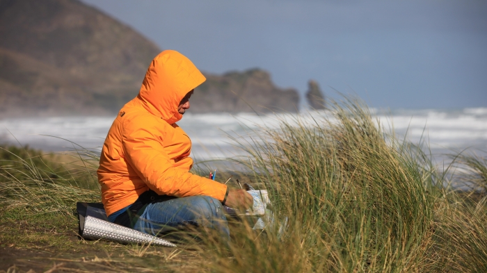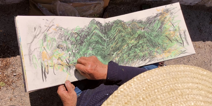 李玉雙先生在海邊寫生