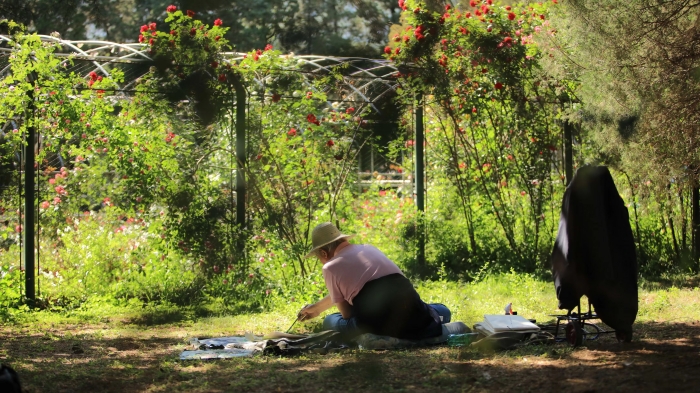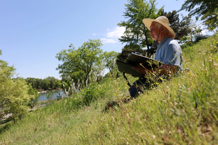 李玉雙在公園寫生