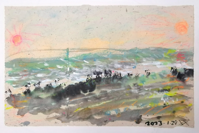 每個所到之處,玉雙先生都懷抱自然之愛,和對人與事的感謝。能將時間交付給自然和繪畫,對于他來說是最珍貴與幸福的事,在瞬息萬變的自然之中,他選擇用不變之法回應,當理解了生于同源,對自然、宇宙和人便生出同樣的愛。