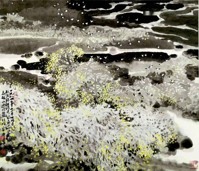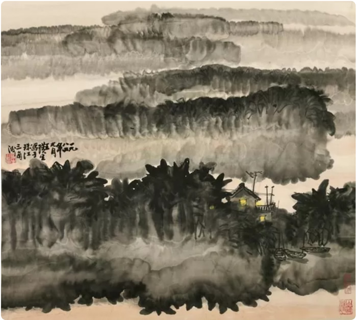 珠三角夕陽 紙本水墨設色 69x64cm 1984