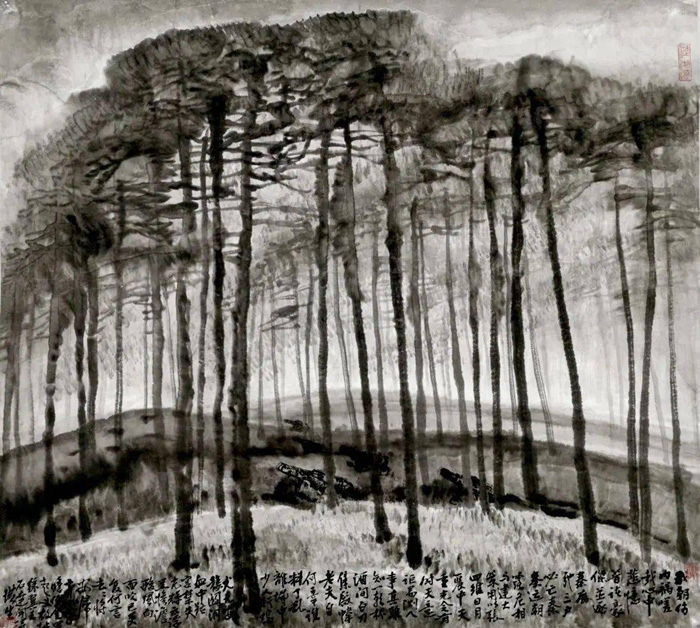 藝術中國:您在“珠江溯源記”的水墨拓印的畫面上手寫了很多朦朧詩的詩句。80年代詩歌曾經與藝術界緊密相關,您在80年代就結識了江河、楊煉、馬德升、黃銳等一批朦朧詩人和藝術家,但是當下藝術界似乎遠離了詩歌,您在展覽中對詩歌的表達出于怎樣的思考?