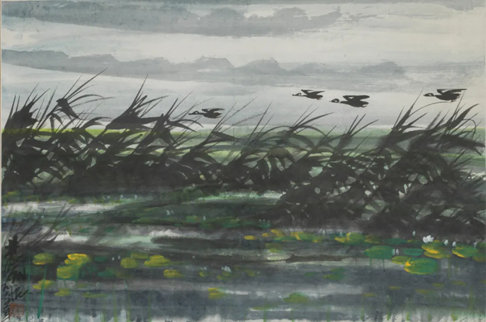 《蘆雁》 林風眠 紙本水墨設色 48cm×72cm 年代不詳 清華大學藝術博物館藏