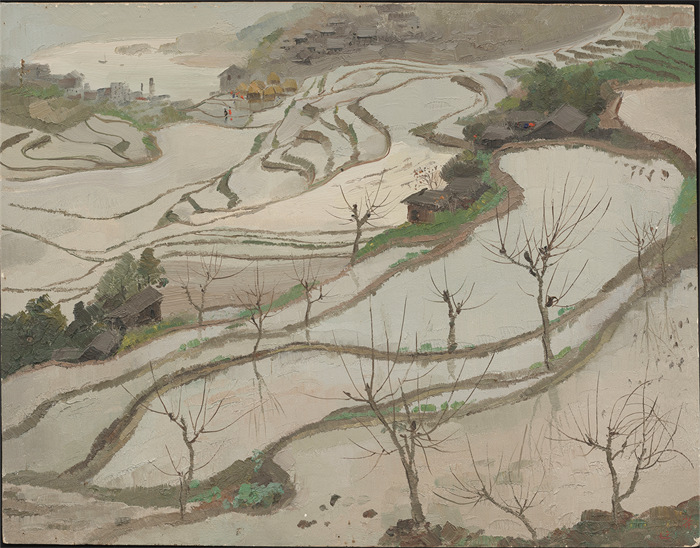 《水田(一)》 吳冠中 木板油畫 47cm×60cm 1973年 中華藝術宮(上海美術館)藏