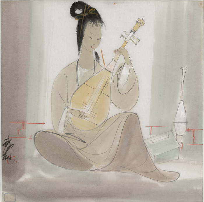 《琵琶仕女》 林風眠 紙本水墨設色 34cm×34cm 20世紀50年代 中華藝術宮(上海美術館)藏