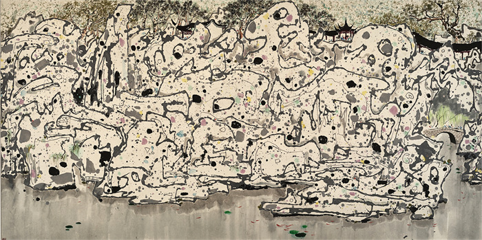 《獅子林》 吳冠中 紙本水墨設色 173cm×290cm 1983年 中華藝術宮(上海美術館)藏