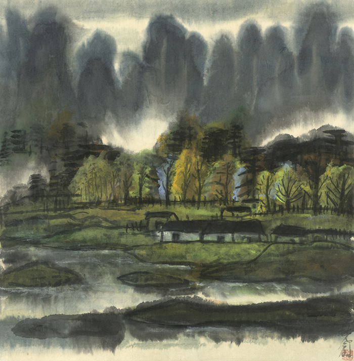 《風景》 林風眠 紙本水墨設色 68cm×68cm 20世紀80年代 中國美術學院美術館藏
