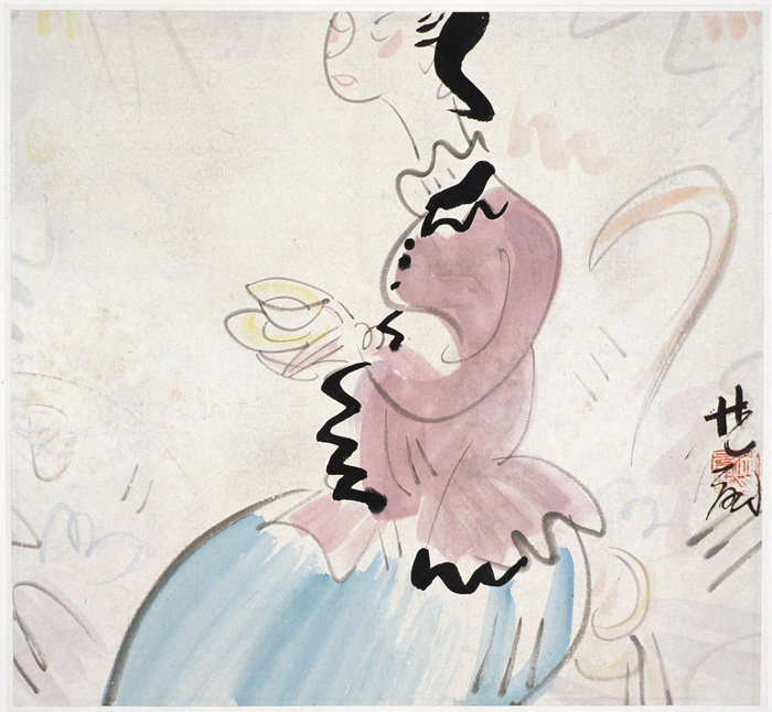 《品茗》 林風眠 紙本水墨設色 29.5cm×32cm 20世紀40年代 中央美術學院美術館藏