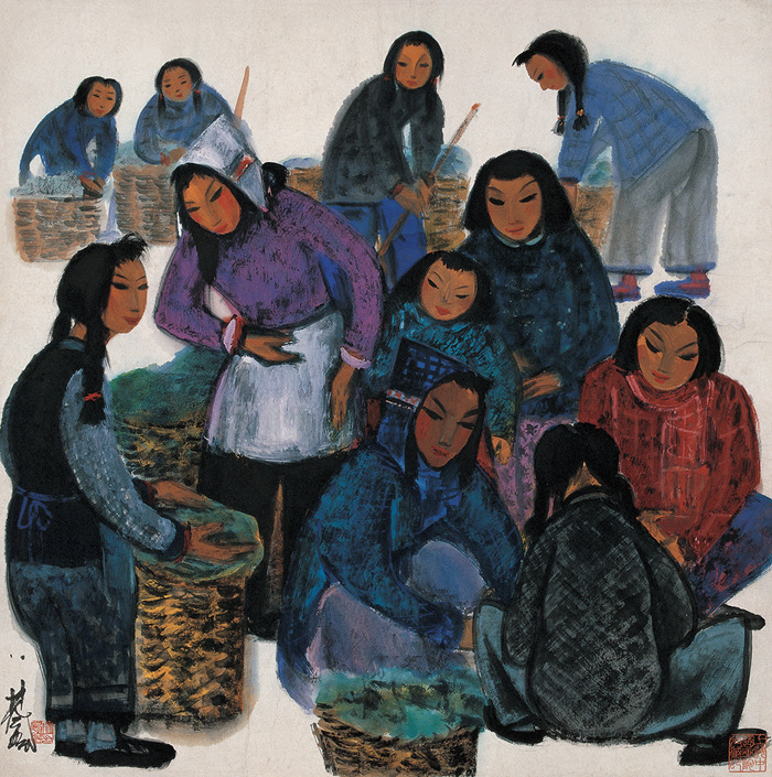 《農婦(滿筐)》 林風眠 紙本水墨設色 67cm×68cm 20世紀50年代 上海中國畫院藏