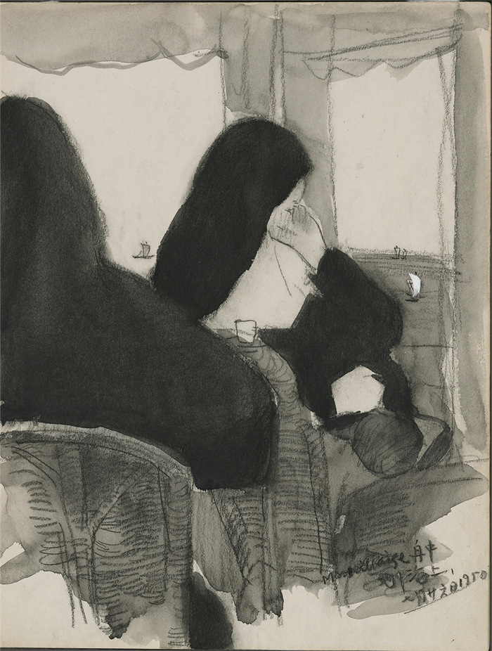 《旅途》 吳冠中 紙本鉛筆、水墨 27cm×21cm 1950年 中華藝術宮(上海美術館)藏