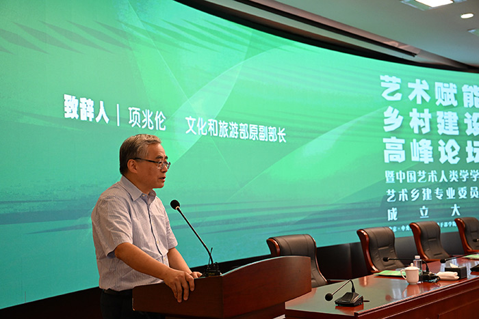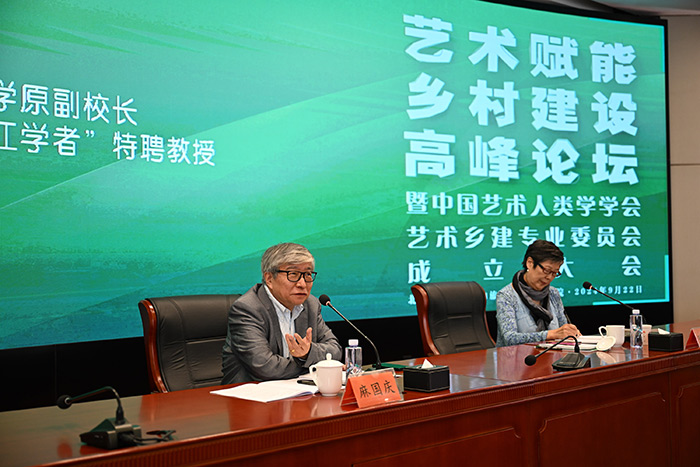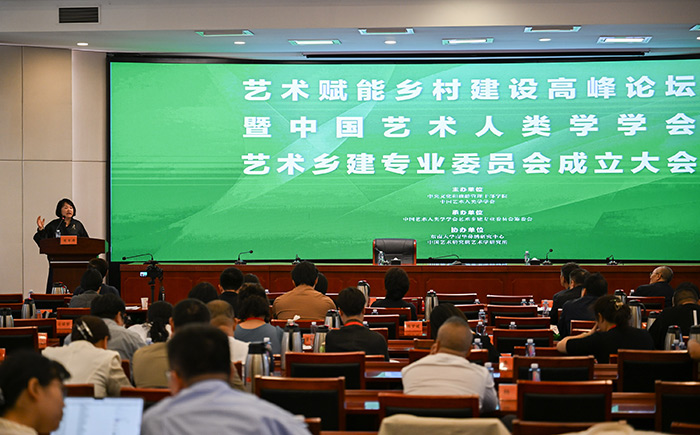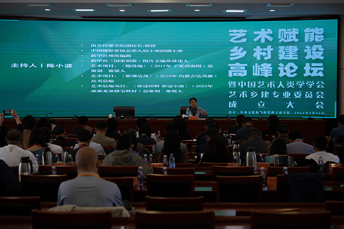 2024年9月22日,藝術賦能鄉村建設高峰論壇暨中國藝術人類學學會藝術鄉建專業委員會成立大會在北京成功召開。文化和旅游部原副部長項兆倫、中央文化和旅游管理干部學院黨委書記喻劍南、中國社會科學院民族學研究所所長王延中、中央美術學院副院長呂品晶、四川美術學院院長焦興濤,中央民族大學原副校長,教育部“長江學者”特聘教授麻國慶以及來自全國92所高校的專家、學者和相關單位代表出席此次成立大會。會議開幕式由中央文化和旅游管理干部學院黨委書記喻劍南主持,成立大會由線下和線上同步進行。