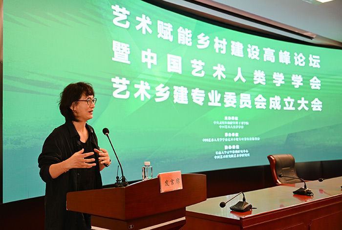 中國藝術人類學會會長、東南大學首席教授方李莉在致辭中介紹了中國藝術人類學學會的背景與當下概況,詳細介紹了藝術鄉建的發展歷程與具體案例。她表示,藝術鄉建專業委員會的成立是順應鄉村振興國家發展戰略的時代需求,建立全國性的藝術鄉建學術組織,共建一個跨領域、跨學科、跨行業的合作平臺,推動高校師生深入鄉村參與田野考察,挖掘在地文化與藝術基因,激活鄉村遺產資源,為鄉村振興貢獻力量。