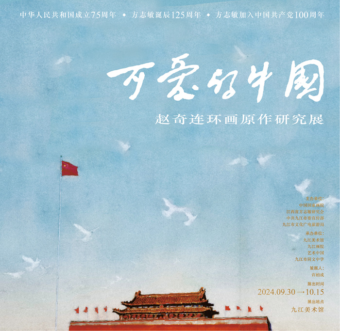 為慶祝中華人民共和國成立75周年,紀念方志敏誕辰125周年、方志敏加入中國共產黨100周年,“可愛的中國——趙奇連環畫原作研究展”將于2024年9月30日至10月15日在九江美術館展出。本次展覽由中國國家畫院、江西省方志敏研究會、中共九江市委宣傳部、九江市文化廣電旅游局主辦,九江美術館、九江畫院、藝術中國、九江市同文中學承辦。