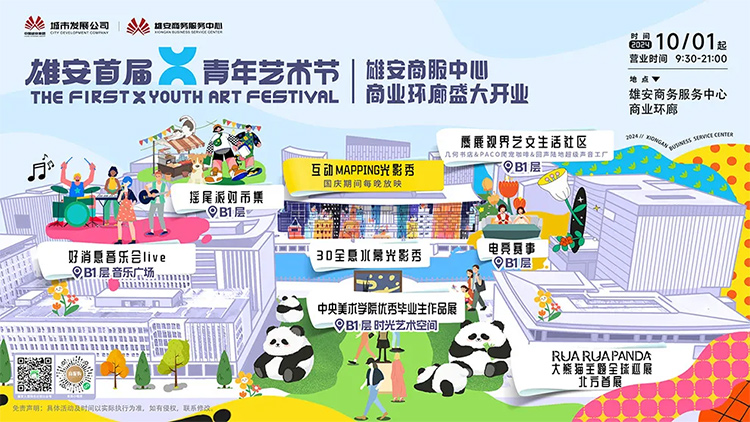 2024年10月1日,這場突破腦洞想象的光影秀將在雄安商務服務中心商業環廊啟幕,這將不僅是一場橫跨國慶黃金周的震撼光影秀,更是一場集合品牌店、藝術展、電競比賽、音樂live、寵物派對、主題巡游、DIY親子手作、會員活動等30+主題的大型活動。雄安首屆X青年藝術節將以一站式全齡全天不落幕的吃喝玩樂購娛創新體驗,打造一場京津冀國慶文旅度假盛宴。(圖片由主辦方提供)