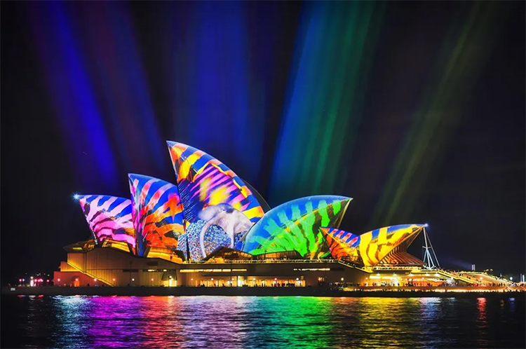 位于澳大利亞悉尼的“活力悉尼”(VividSyndey)活動期間,當地的標志性建筑悉尼歌劇院被五顏六色的數字影像所覆蓋。