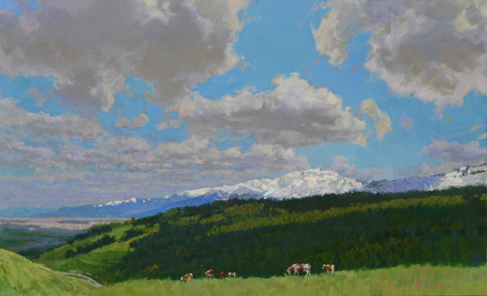 王篤濤《高天厚土·壩上》100x150cm 木板坦培拉 2022年