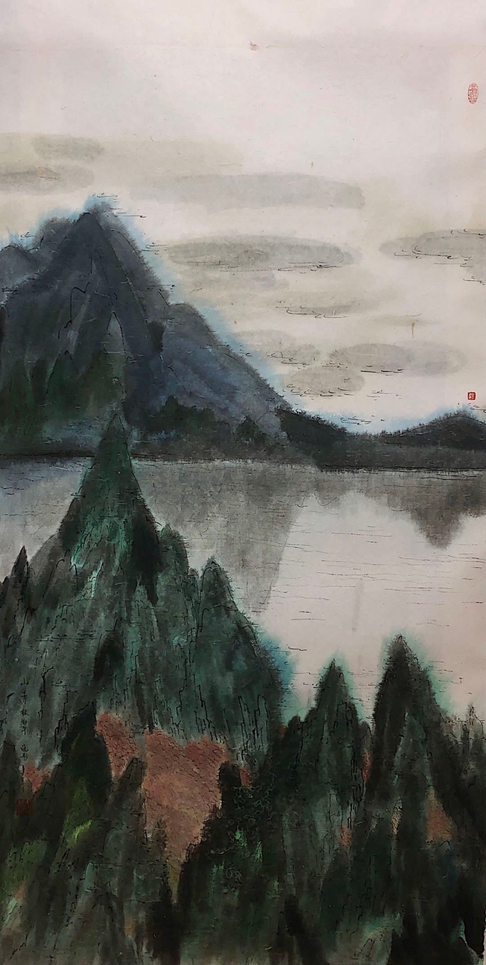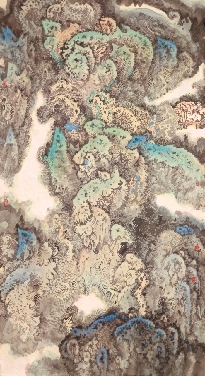 王曉彤《山青林翠》180cmx95cm 彩墨畫 2019年