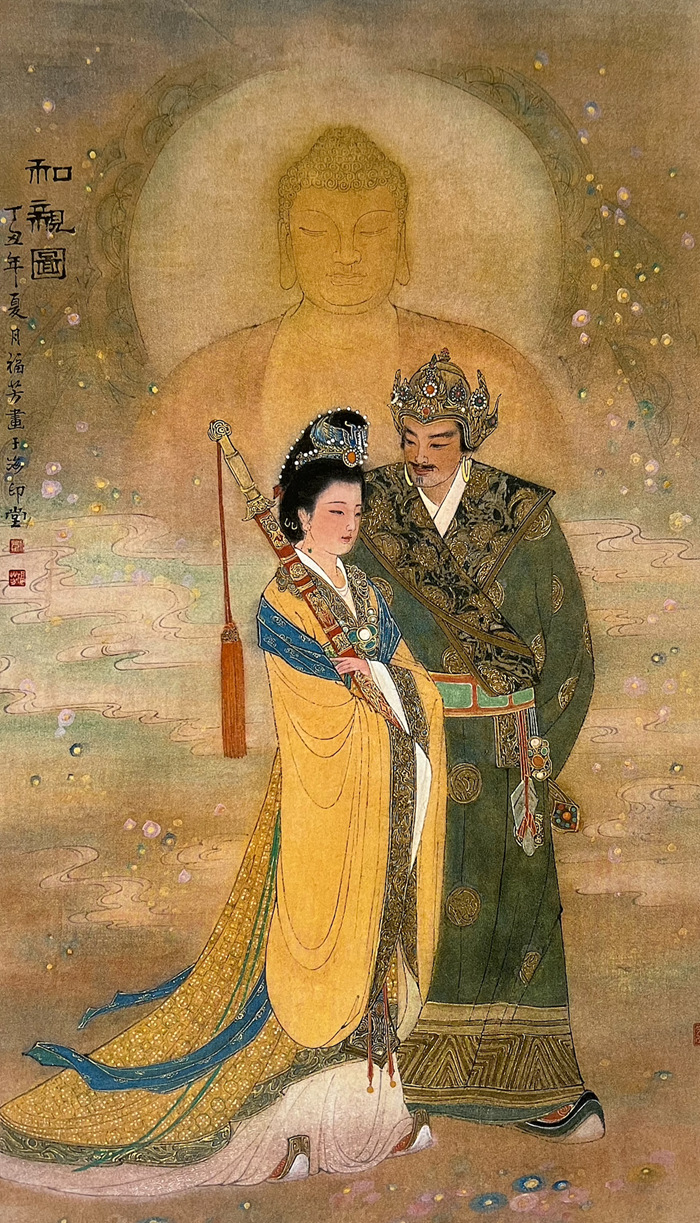 劉福芳 《和親圖》 中國畫 絹本 礦物顏色 142x83cm 1997