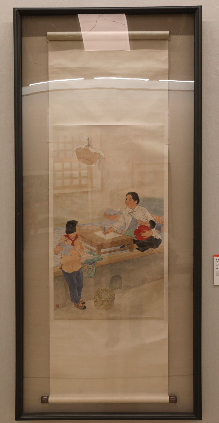 姜燕 《考考媽媽》 中國畫 紙本水墨設色 113.6x64.6cm 1953