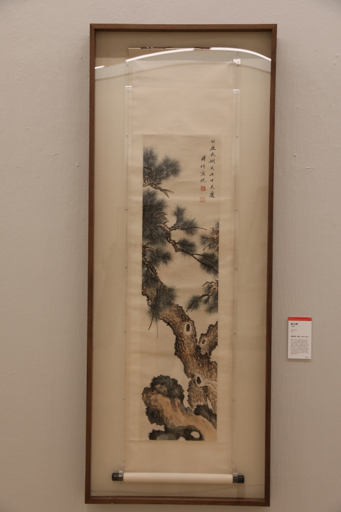 溥雪齋《松石圖》中國畫 紙本水墨設色 132x33cm 1937
