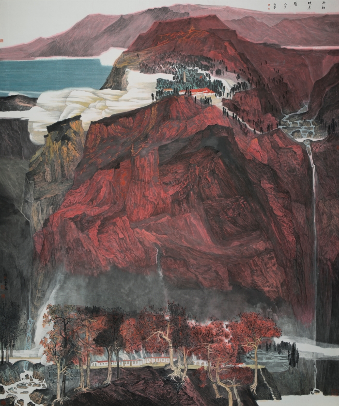 孫小東 《柏坡晨曦》200cmx230cm 紙本設色 2019年