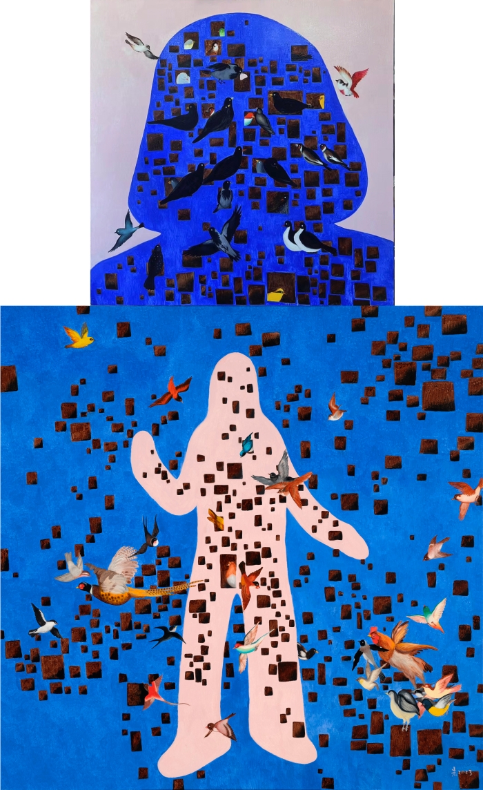 蘆巖 古跡與飛鳥 100x100cm + 150x150cm 布面油畫 2024