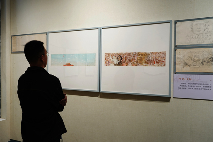 觀眾觀看《可愛的中國》連環畫原作