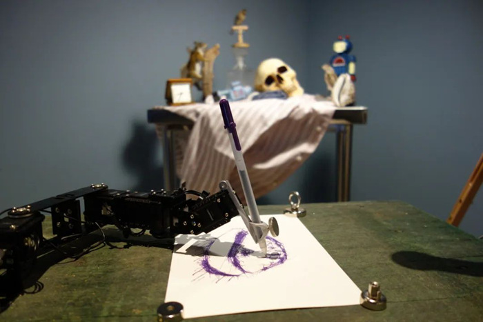 本章將展出13位(12組)藝術家融合不同領域的創作。其中帕特里克·特雷賽特(Patrick Tresset)的作品《人類研究2》通過機器人裝置探索人工智能與繪畫藝術的結合,劉佳玉的作品《宇宙的孩子(2024)》利用AI再現自然界中風與水流的復雜性和隨機性,青山周平(Aoyama Shuhei)通過創造僅可利用觸感、聲音和氣味感知周圍環境的空間,探索人類感官與環境認知的關系。這些作品將展示不同領域“邊界”間在當代藝術中的的突破與重構。
