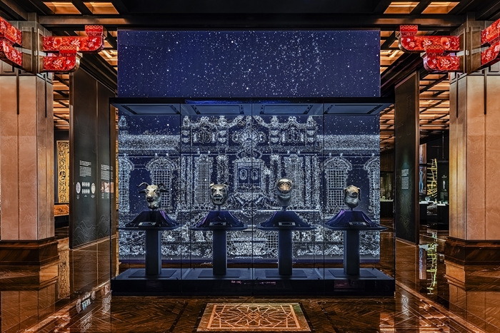 圓明園四獸首于保利美高梅博物館“藍色飄帶”首展的“交織”展區內展出。(保利藝術博物館館藏)