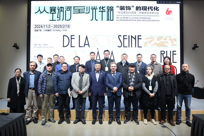 中國工藝美術學會黨委書記、理事長才大穎在致辭中指出,在中法建交60周年這一時間節點上,以“‘裝飾’的現代化”為題舉辦展覽和研討會蘊含著深切的期待?!肮馊A路”不只是地標,而是一種精神載體,蘊含著幾代人的奮進歷程;塞納河也不僅代表法國,更是那個時代,甚至整個西方世界裝飾藝術當代表達的圣地。從塞納河到光華路,再到清華園,因而具有了西學東進與融古鑠今的交互相映的使命,由此形成了“光華路”百花園林的一支重要的文脈,并隨著時代逐步彰顯出文脈傳承的必要性與可能性。如果說塞納河是遙遠的過去,那么清華園則代表著當下與未來。這是“光華路”的文脈與榮耀,更是幾代人付出青春甚至終其一生的追求,“光華路”的精神必將永存。
