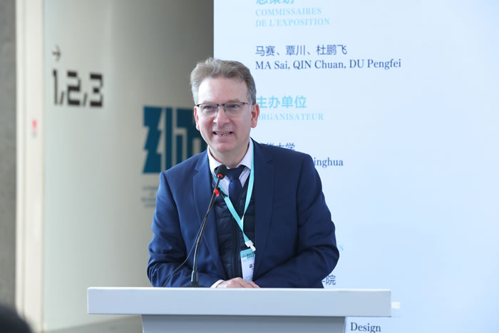 展覽主辦方代表、展覽總策劃、清華大學美術學院黨委書記覃川致辭并宣布展覽開幕