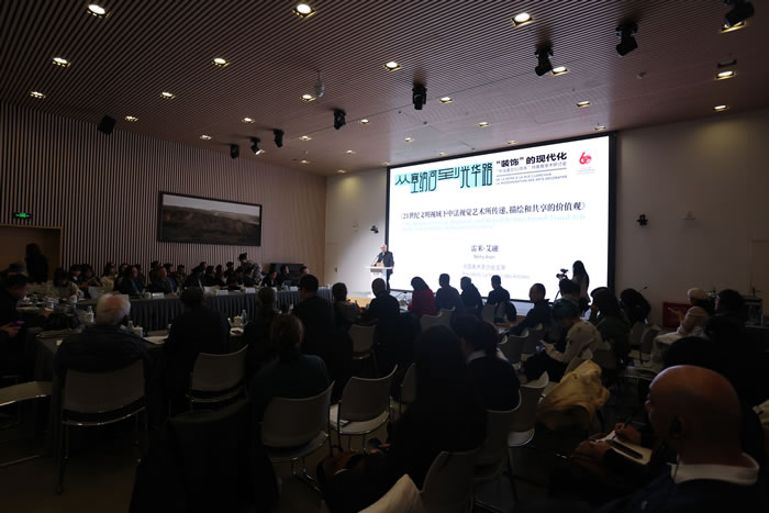 下午論壇發言環節由清華大學美術學院副院長、《裝飾》雜志主編方曉風主持。法國美術家協會主席雷米·艾融以《21世紀文明視域下中法視覺藝術所傳遞、描繪和共享的價值觀》為題探討了兩國視覺藝術的交流與互鑒,中國工藝美術學會黨委書記、理事長才大穎以《從塞納河到清華園:“裝飾”現代化進程中光華路的文脈傳承》為題剖析了裝飾藝術在現代化進程中的傳承與發展,清華大學美術學院教授陳池瑜以《陳之佛與雷圭元在中國現代圖案理論上的貢獻》為題,對兩位藝術家進行了詳盡的對比分析,中央美術學院建筑學院副院長崔冬暉以《傳統圖案元素于現代藝術設計中的重構與新生》為題展示了傳統元素在現代設計中的創新應用,中國美術學院副院長韓緒以《圖案研究是中國設計教育發端》為題回顧了圖案研究在設計教育史上的重要地位,山東工藝美術學院副院長韓文濤以《美之為美,美美與共——裝飾藝術的當代發展》為題梳理了裝飾藝術的發展脈絡,南京藝術學院院長張凌浩以《“裝飾”的現代化:中國化設計的持續建構》為題探討了裝飾藝術的現代化路徑。