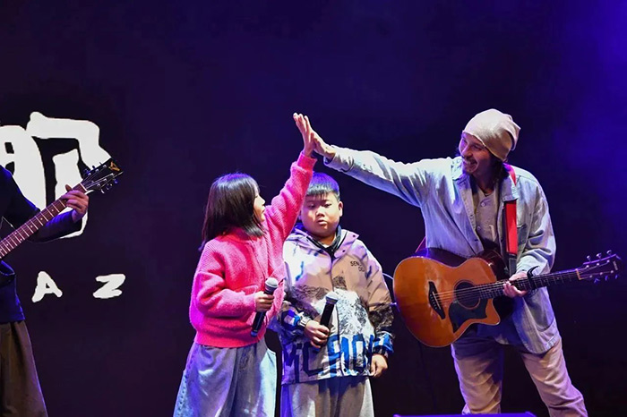 王藝可與宰彬杰小朋友與瓦依那合唱,“南坡秋興2023”活動現場,2023年10月,攝影:謝穎