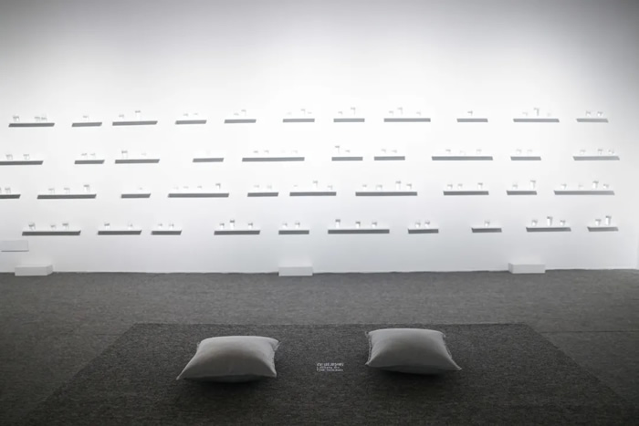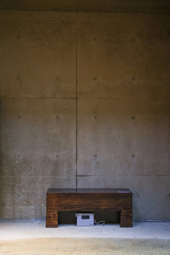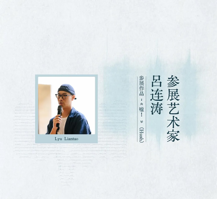 藝術家呂連濤到訪川上行時,最享受的莫過于在回廊間穿梭。隔絕了外界的噪音干擾,他在靜謐的空間里,感受到建筑之間孕育出的聲音:風拂過樹葉時的輕響仿佛交響樂團的合奏,雨滴落在不同角落時,又彈奏出截然不同的樂曲?;乩葘訉盈B疊,仿佛將自然的聲音放大,使呂連濤感受到一種強大的能量。他希望通過藝術作品讓到訪者在這里靜靜坐下,陷入思考。于是,他為展覽帶來了作品《噓!》。