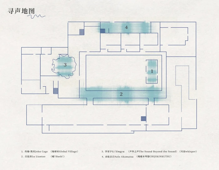 因此,川上行的首個展覽,以「亦聲亦景」為主題,聚焦聲與景之間的關系,呈現聲音與建筑空間的跨文化互動。通過聲音藝術與建筑的從容對話,逐步激活空間中流轉的記憶與情感。我們希望觀眾不僅能通過聆聽、觸摸和感知,更深入地理解聲音與建筑空間之間的聯結,還能體會在地文化與當代藝術的交融之美。