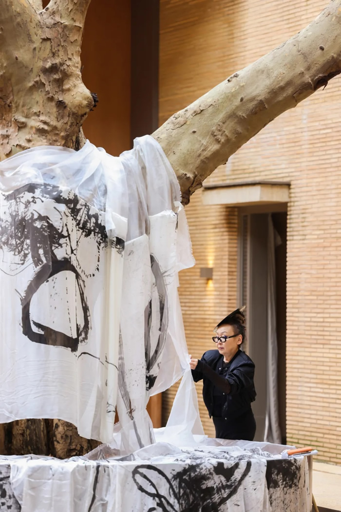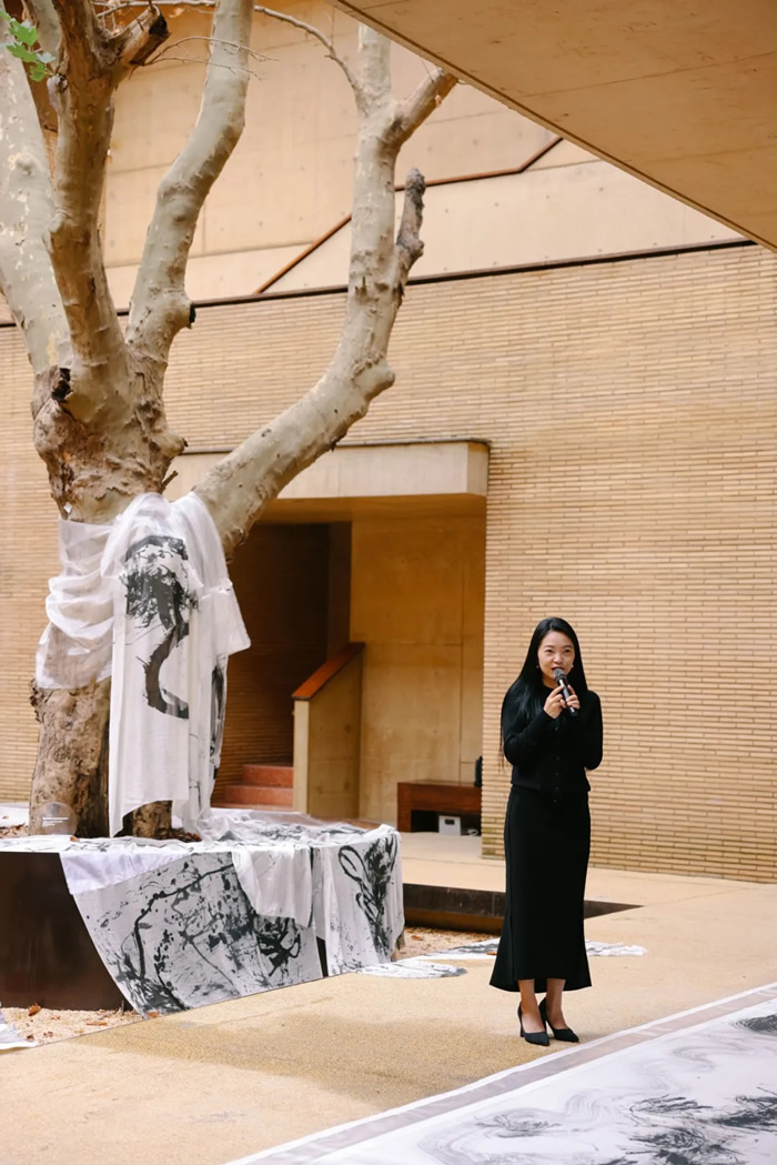 此次在10月17日展覽開幕當天,珊蔻為到訪者獻上聲音身體行為繪畫,以聲音驅動畫筆,更直觀地展現聲音流動的痕跡。也預示著未來的川上行,將以各種藝術形式,展開空間的書寫與敘事。