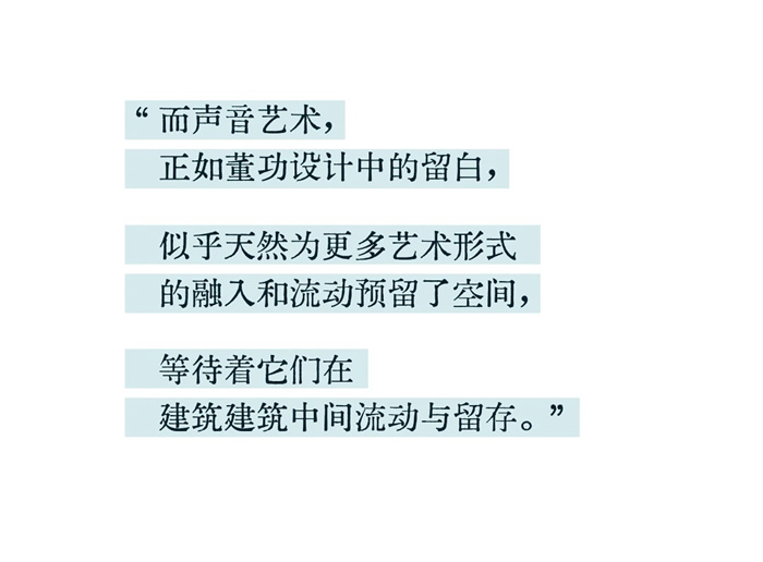 自然的低吟,聲音的流動,在建筑空間中交織,融合為更加極致與先鋒的藝術之音。讓聲音與建筑形成有機整體,在互動中賦予它們全新的生命力,這正是“亦聲亦景”聲音藝術展覽的核心理念。