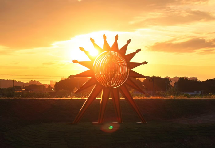 鄔建安新作《天行健——勤勉的太陽》高聳在平沙島渡口,張開雙臂迎來送往