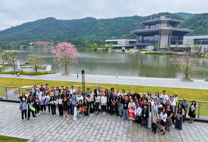 聽音湖畔有為館前,第一批廣東南海大地藝術節的朋友們合影(攝影:李均良)