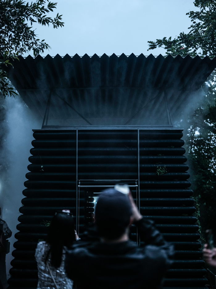 圍繞著沈烈毅的《魚躍鳶飛》,策展人王子耕召集建筑師與藝術家共同打造了六組《漁耕小舍》,形成了一個環湖的“微美術館”群,以回應“水係南?!钡闹黝},致敬嶺南文化。莊子云“乘物以游心”,代表自然規律的“物”與一個個具體的、可進入感知的“屋”互聯共生,作品與環境相融,成為西樵湖畔的別樣景觀。