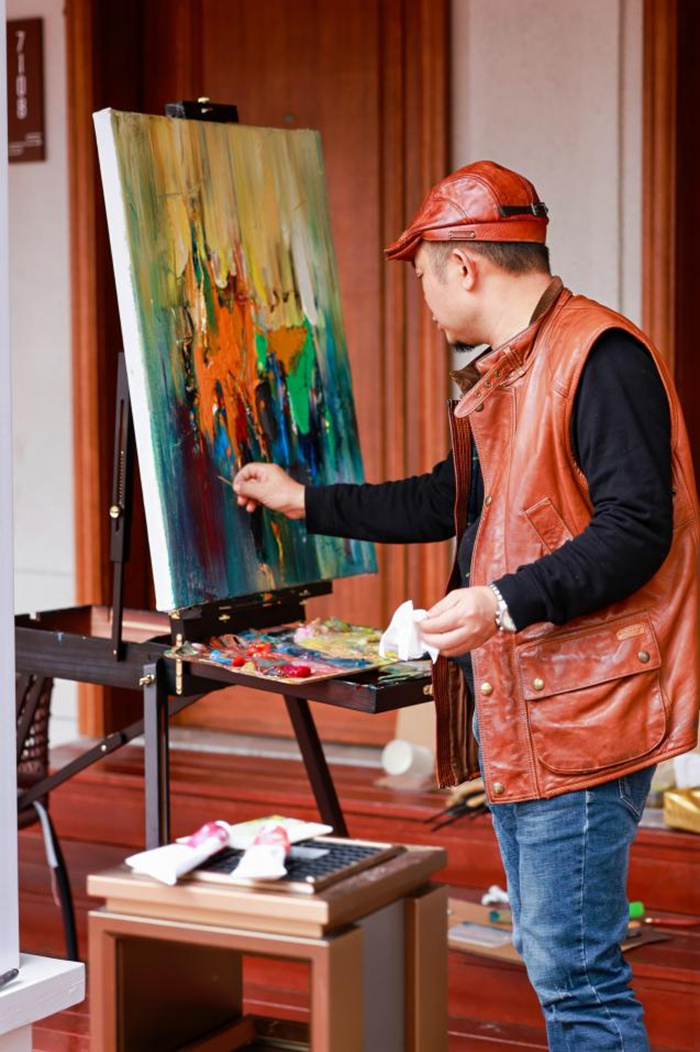 中國美協綜合材料藝委會委員、中國美術學院繪畫藝術學院副院長郭健濂描繪如琴湖秋色